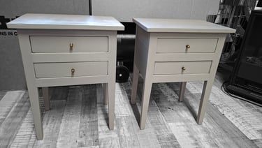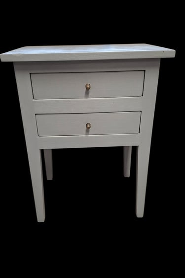 Deux petits chevets en bois, avec 2 tiroirs. Peints lorsque je les ai récupérés, ils sont prêts à être personnalisés pour vous et votre intérieur.