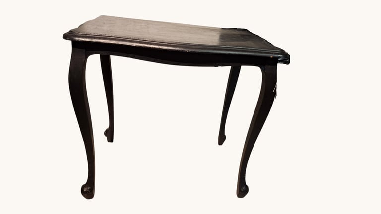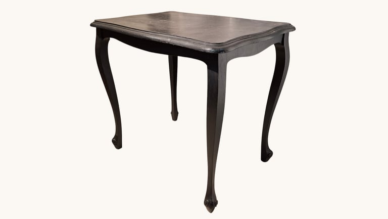 aux pieds en cabriole, caractéristiques du style Louis XV, se terminant en enroulement. Actuellement peinte en noir par ses anciens propriétaires, je la transformerai pour vous pour lui donner un nouvel éclat.